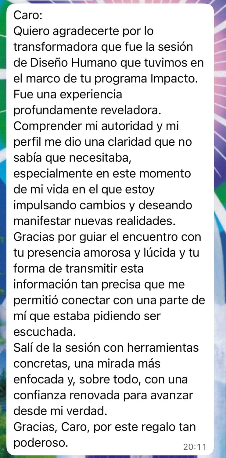 Hoy integro coaching, Diseño Humano y activaciones energéticas como un mapa práctico para unir energía, decisiones y estructura, acompañando procesos donde el negocio deja de drenar y empieza a acompañar la vida que querés tener.